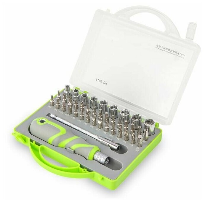 Отвертка с набором бит и торцевых головок 41 предмет информация: