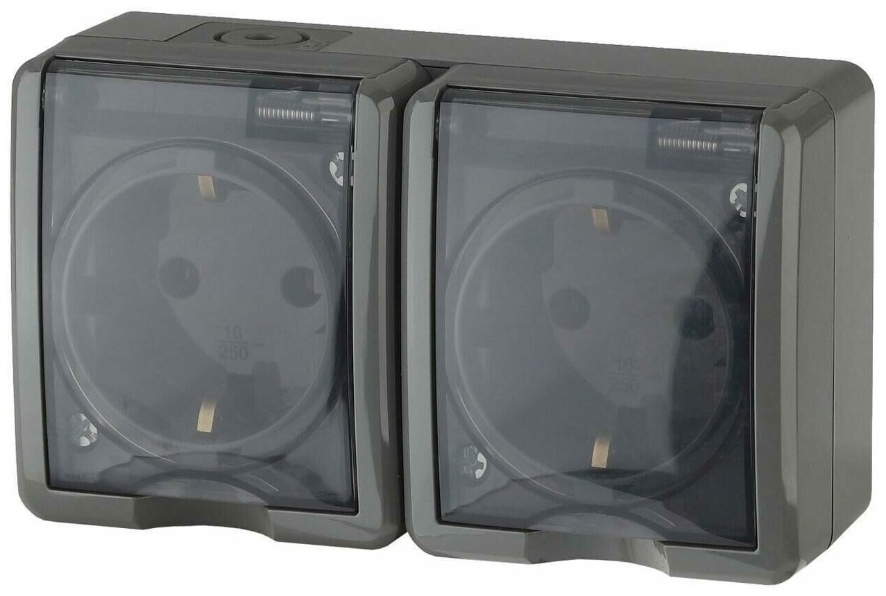 Розетка 2-м ОП Эра Эксперт 11-2403-03 16А IP54 16AX 250В 2х2P+E сер. Эра Б0020717 ( 1шт. )
