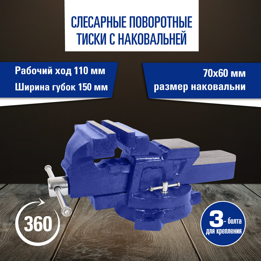 Слесарные поворотные тиски с наковальней 150 мм информация: