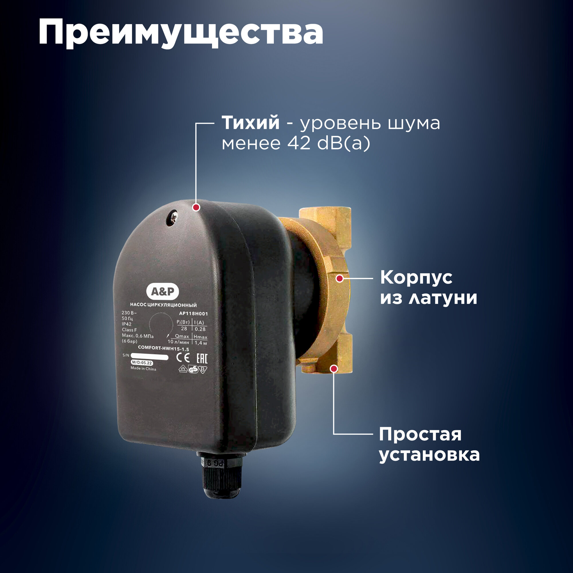 Насос циркуляционный A&P COMFORT-HWH15-1.5 (AP118H001) информация: