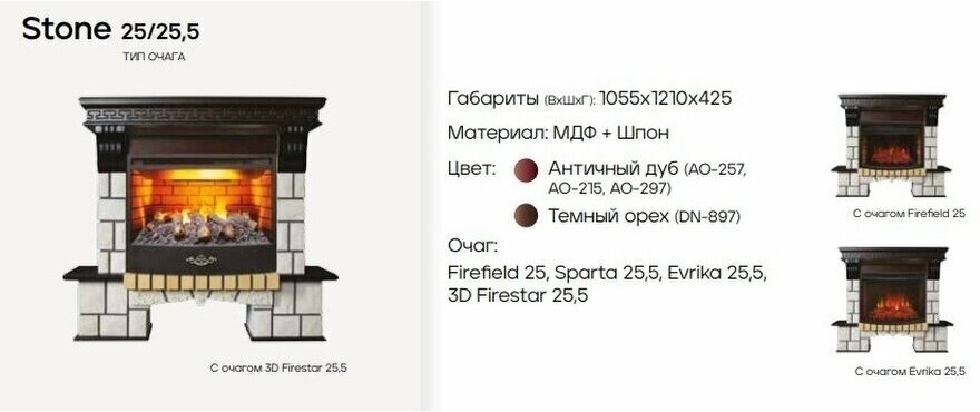 Отзывы на Электрокамин Real Flame Stone 25/25,5 AO-257/215/297 с очагом Evrika 25,5 LED (дуб)