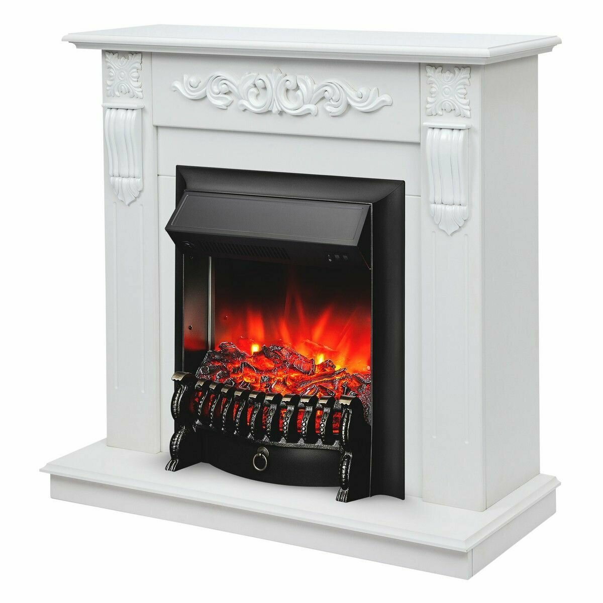Электрокамин RealFlame Dominica Corner WT МДФ с очагом Majestic, звук потрескивания дров, обогрев, имитация пламени