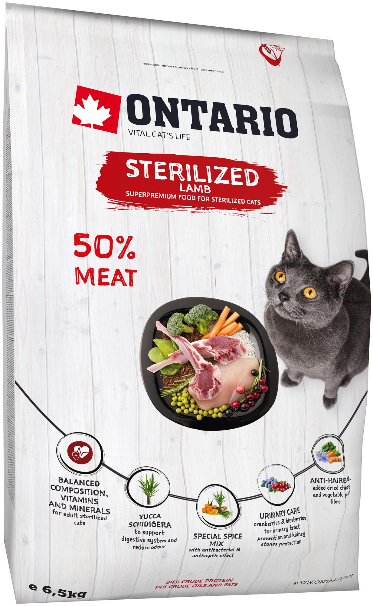 Ontario - Корм для стерилизованных кошек с ягненком (Sterilised Lamb) 6,5 кг