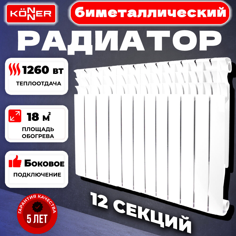 Отзывы на Радиатор биметаллический модель KONNER 80/350 Bimetal, 12 секций