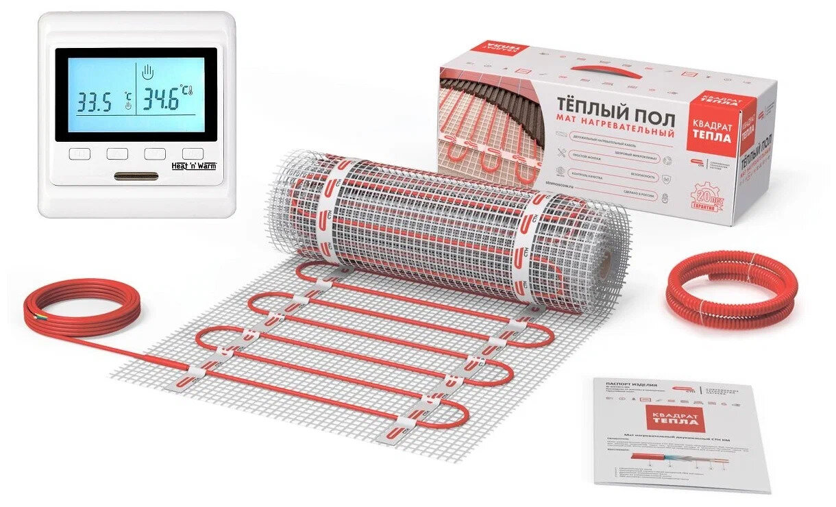 Теплый пол электрический Квадрат тепла под плитку 0,5 м2 с программируемым терморегулятором