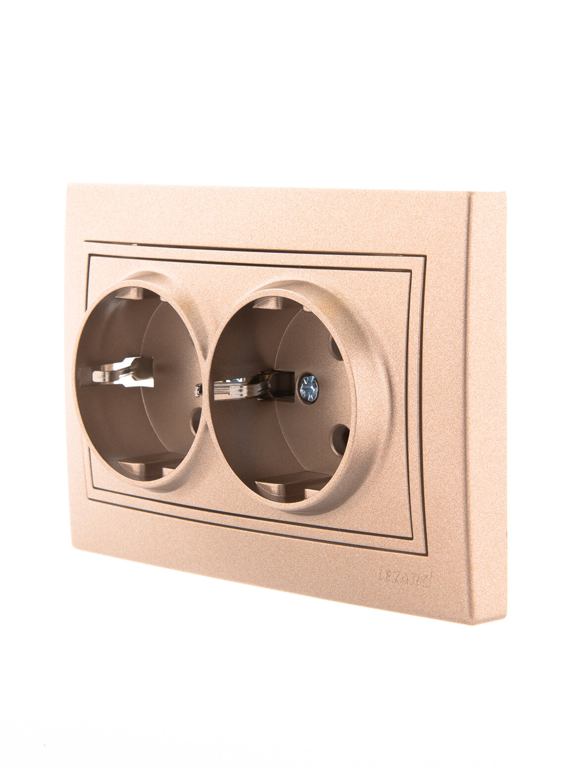Розетка 2-м СП Mira 16А IP20 с заземл. со вставкой керамика зол. метал. LEZARD 701-1313-127