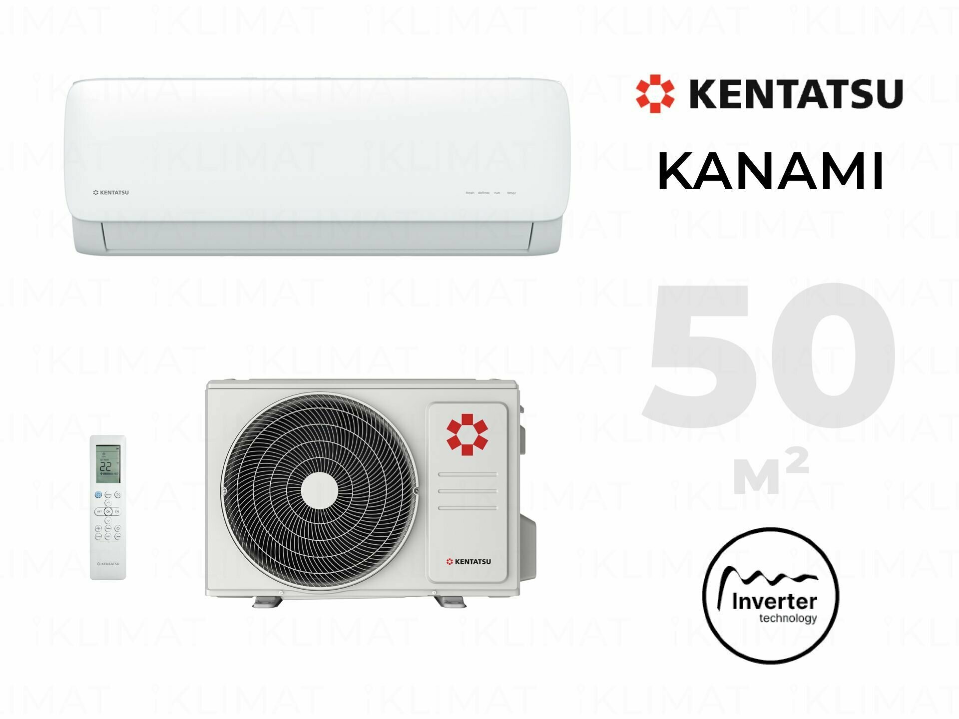 Сплит система настенная, кондиционер бытовой Kentatsu Kanami Inverter KSGA53HZRN1/KSRA53HZRN1 на площадь до 50м2 информация: