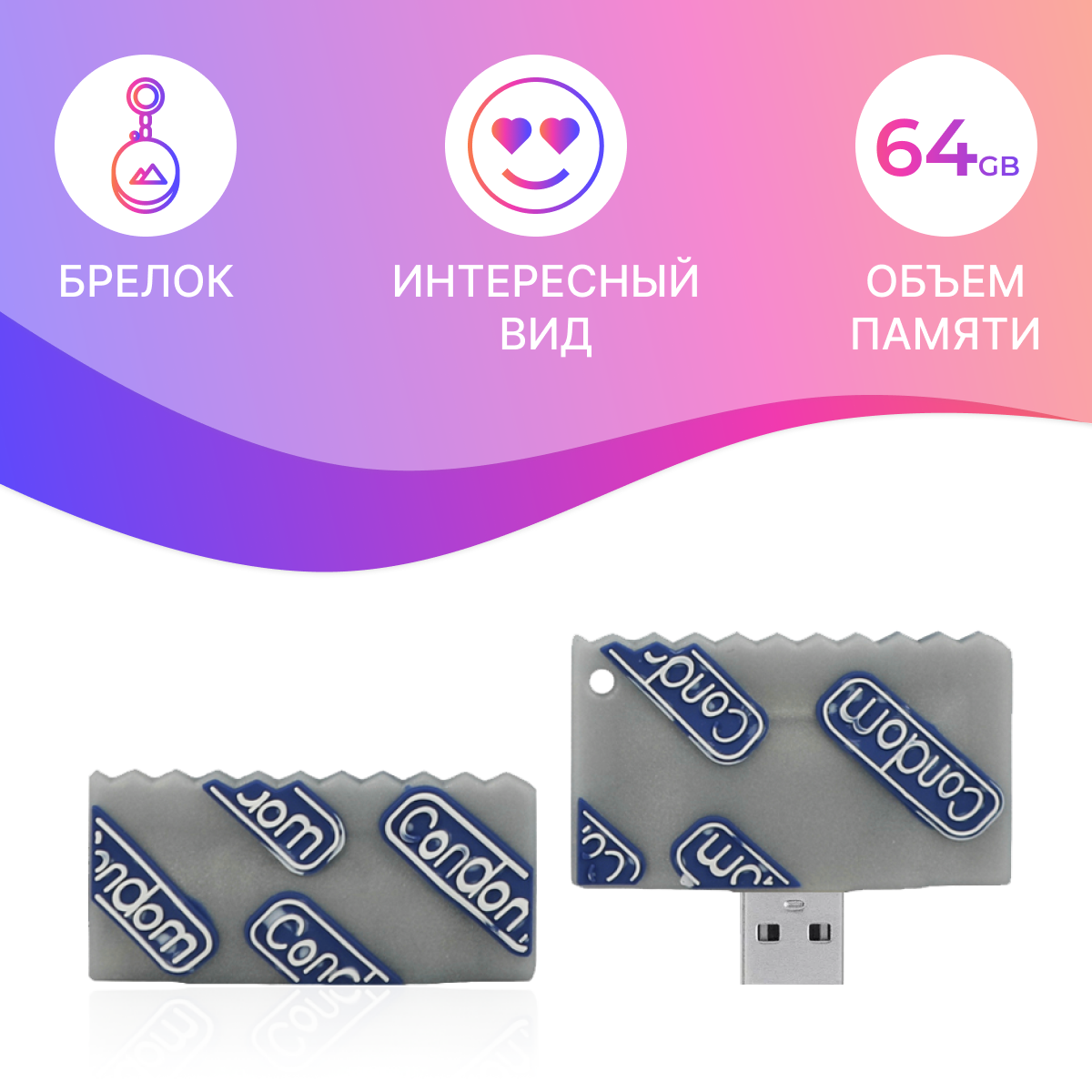 Флешка USB 64GB / Оригинальная подарочная флешка ЮСБ 64 ГБ / Флеш накопитель / USB Flash Drive / Подарок мужчине/ женщине (Condom)