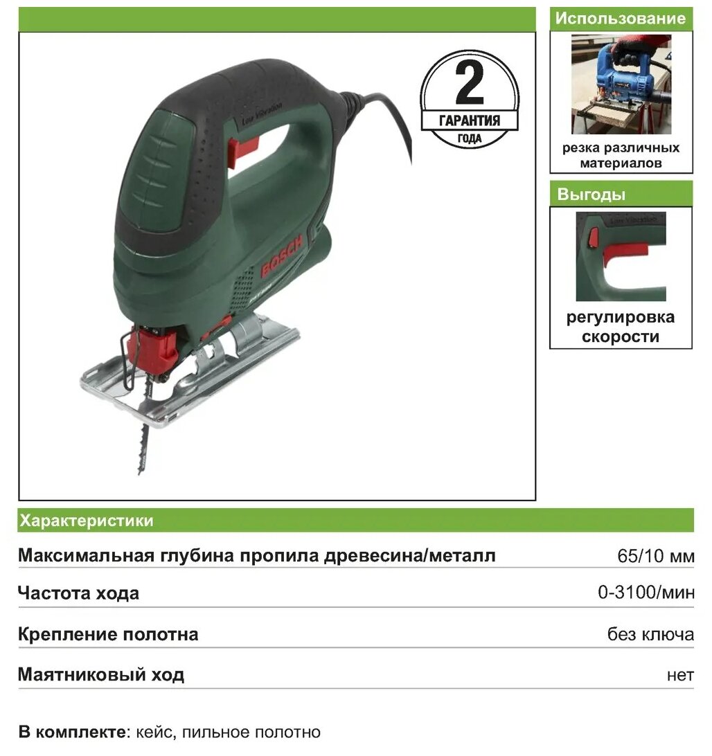 Лобзик Bosch PST 650 06033A0700 (06033A0700-m) информация:
