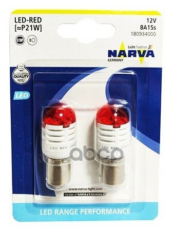 NARVA 18093 Лампа P21W Range Performance LED (BA15s) RED (блистер 2шт.) Narva