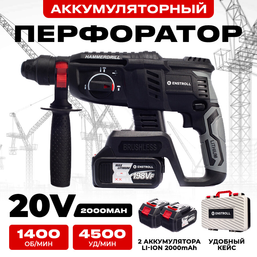10 цен на Перфоратор аккумуляторный Enstroll в кейсе, Дрель, Перфоратор для бетона