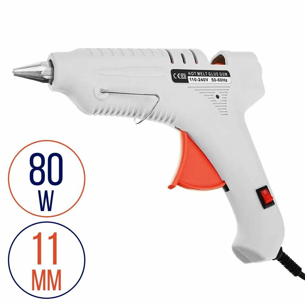 Клеевой пистолет для стержней диаметром 11 мм, 80 Вт, белый информация: