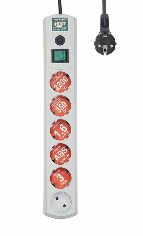 Сетевой фильтр Most LRG 1.6м (6 розеток) белый (пакет ПЭ)