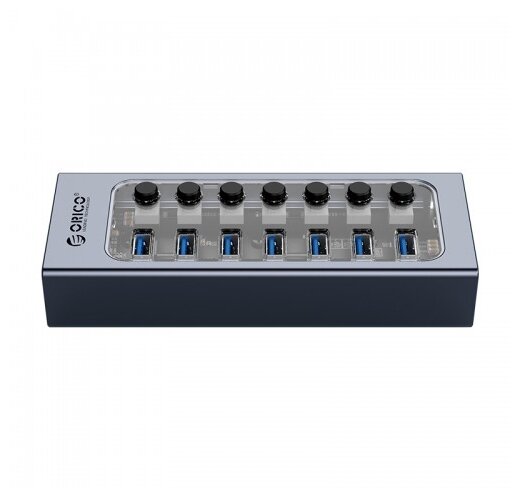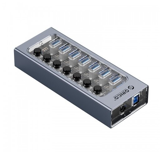 10 цен на USB-концентратор, на 7xUSB-A 3.0 портов, Orico AT2U3-7AB, серый/прозрачный [ORICO-AT2U3-7AB-EU-GY-BP]