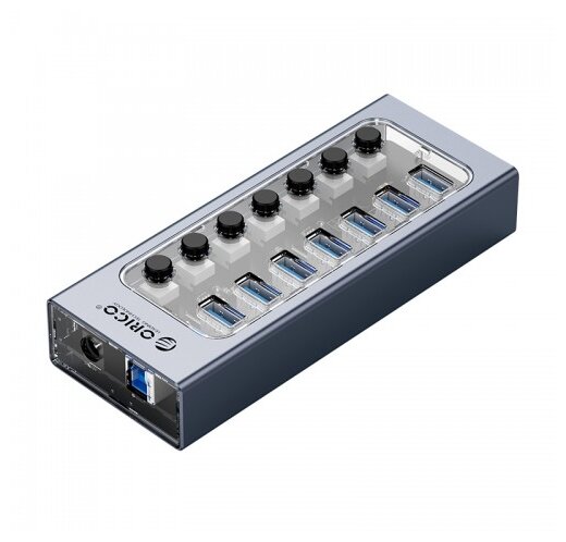 Отзывы на USB-концентратор, на 7xUSB-A 3.0 портов, Orico AT2U3-7AB, серый/прозрачный [ORICO-AT2U3-7AB-EU-GY-BP]