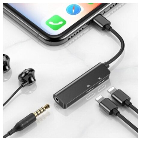 Отзывы на Аудио-переходник Baseus 3-in-1 iP Male to Dual iP & 3.5mm Female Adapter L52 черный