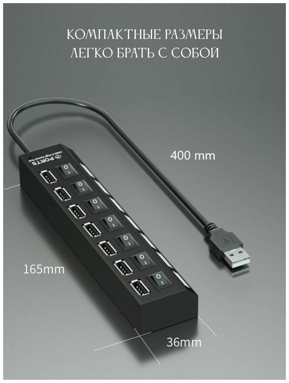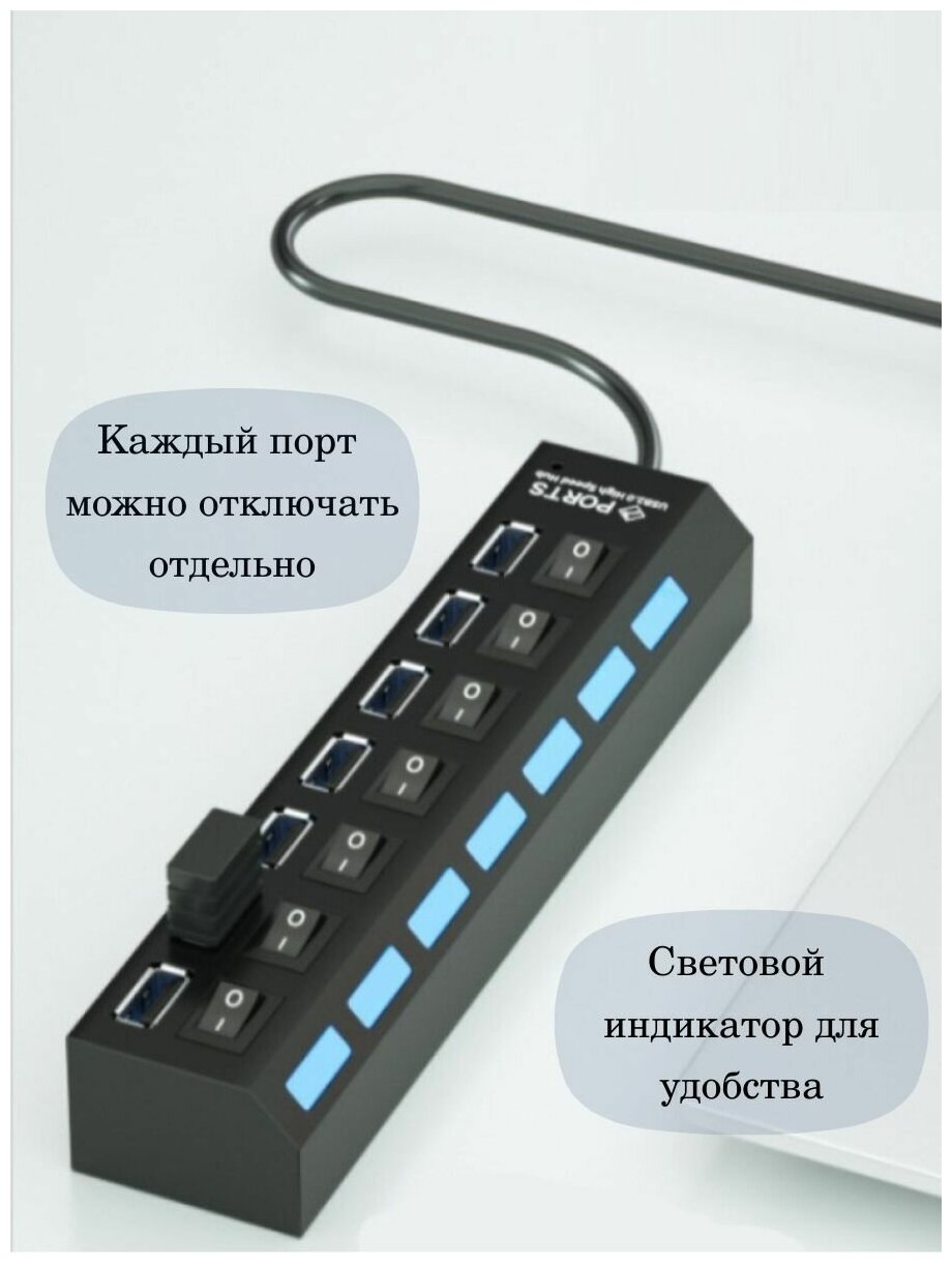 10 цен на Внешний адаптер USB HUB 2.0 ЮСБ Разветвитель на 7 портов 480 MB/сек