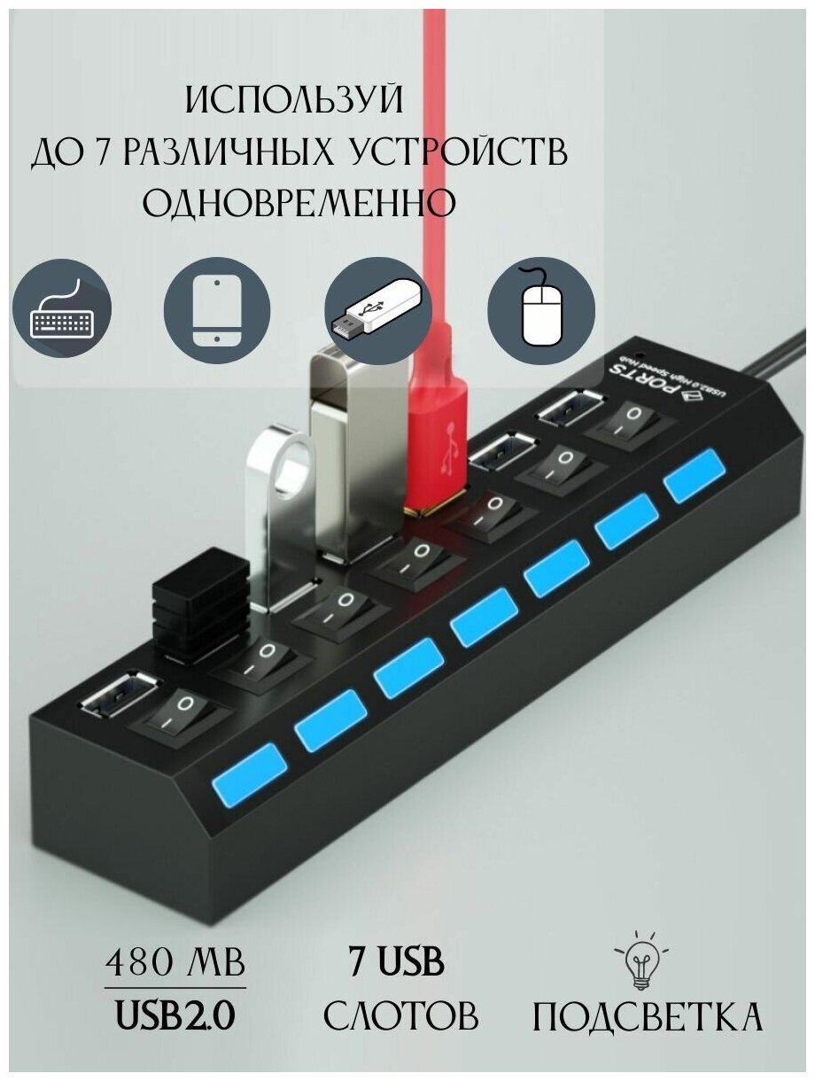 Внешний адаптер USB HUB 2.0 ЮСБ Разветвитель на 7 портов 480 MB/сек информация: