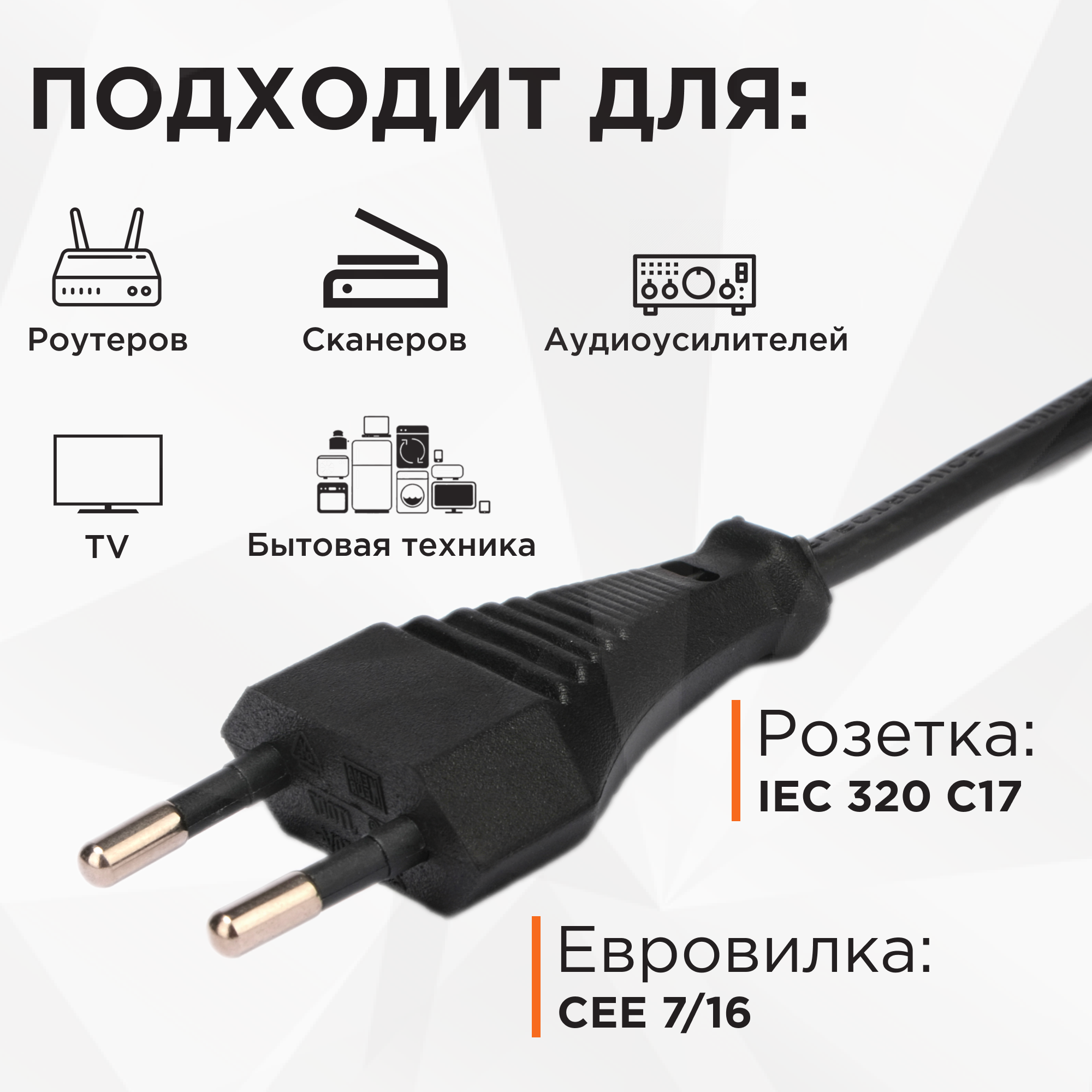 Кабель сетевой для ноутбуков, аудио и видеотехники, двойная розетка (0,5м) PC-184-VDE-0.5М