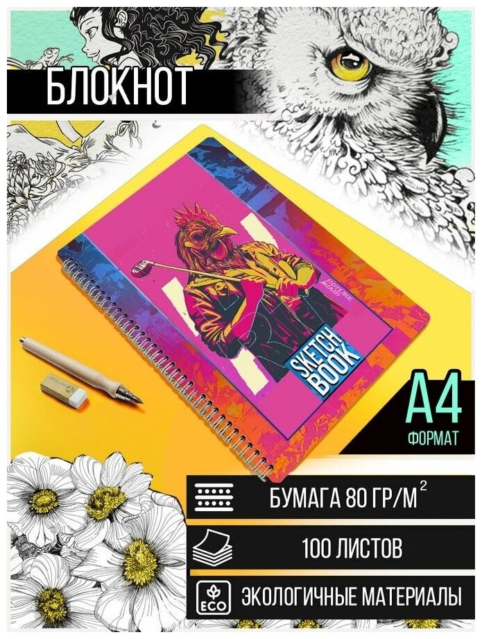 10 цен на Скетчбук, Блокнот для рисования A4 50 листов Игра Hotline Miami - 421