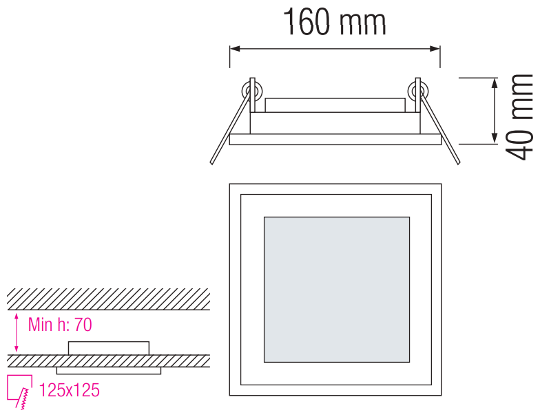 Светильник LED 12Вт 4200К белый встраив. стекло Квадрат HL685LG Horoz 016-015-0012
