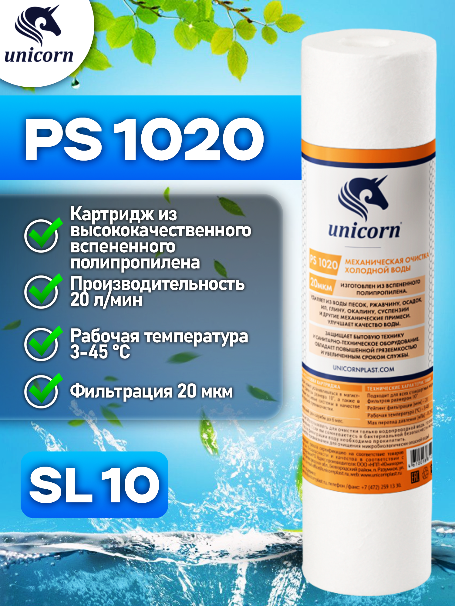 Картридж Unicorn РS 10"SL 1020, полипропиленовый, 20 мкм информация: