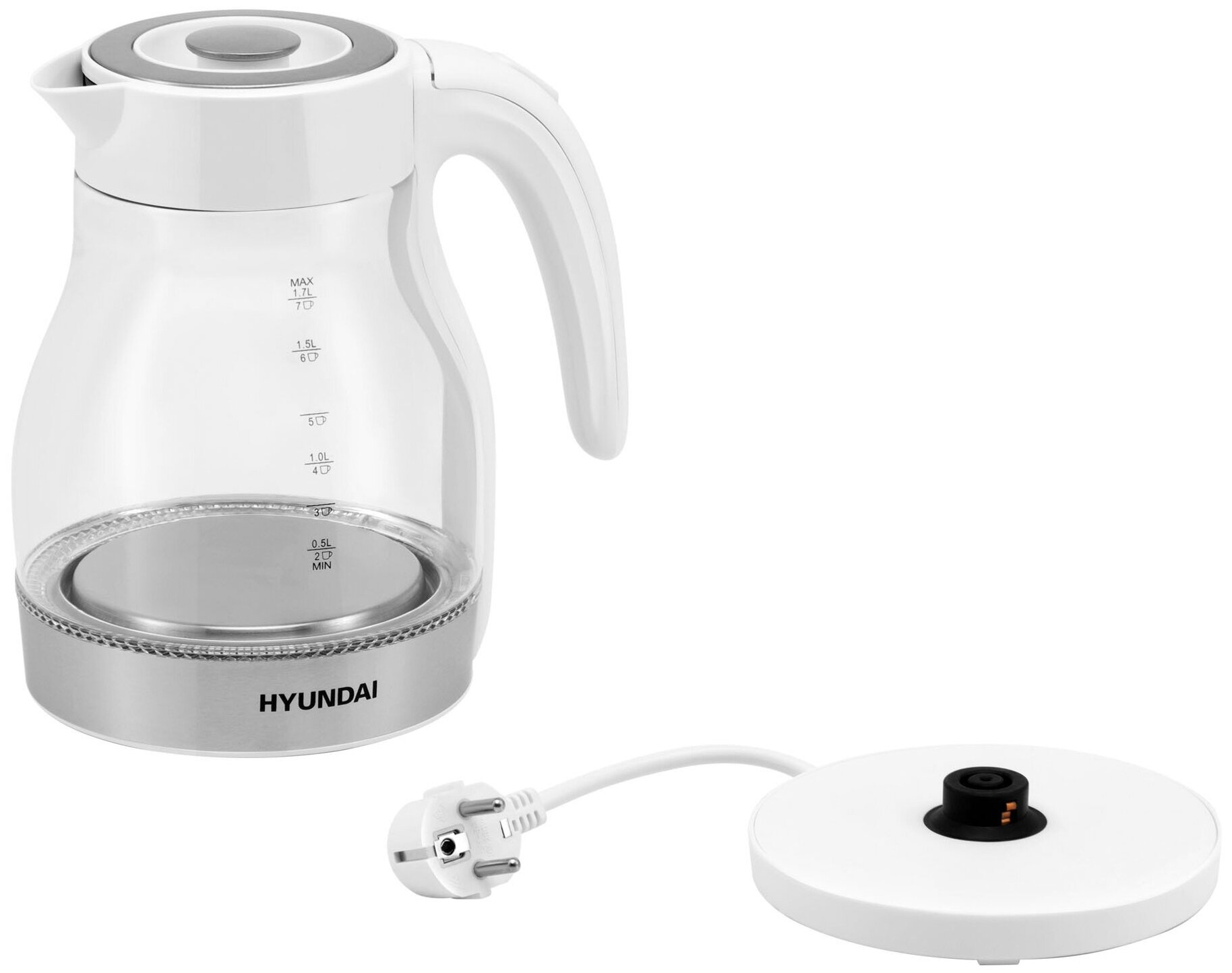 Чайник электрический Hyundai HYK-G3802 белый/серебристый, стекло