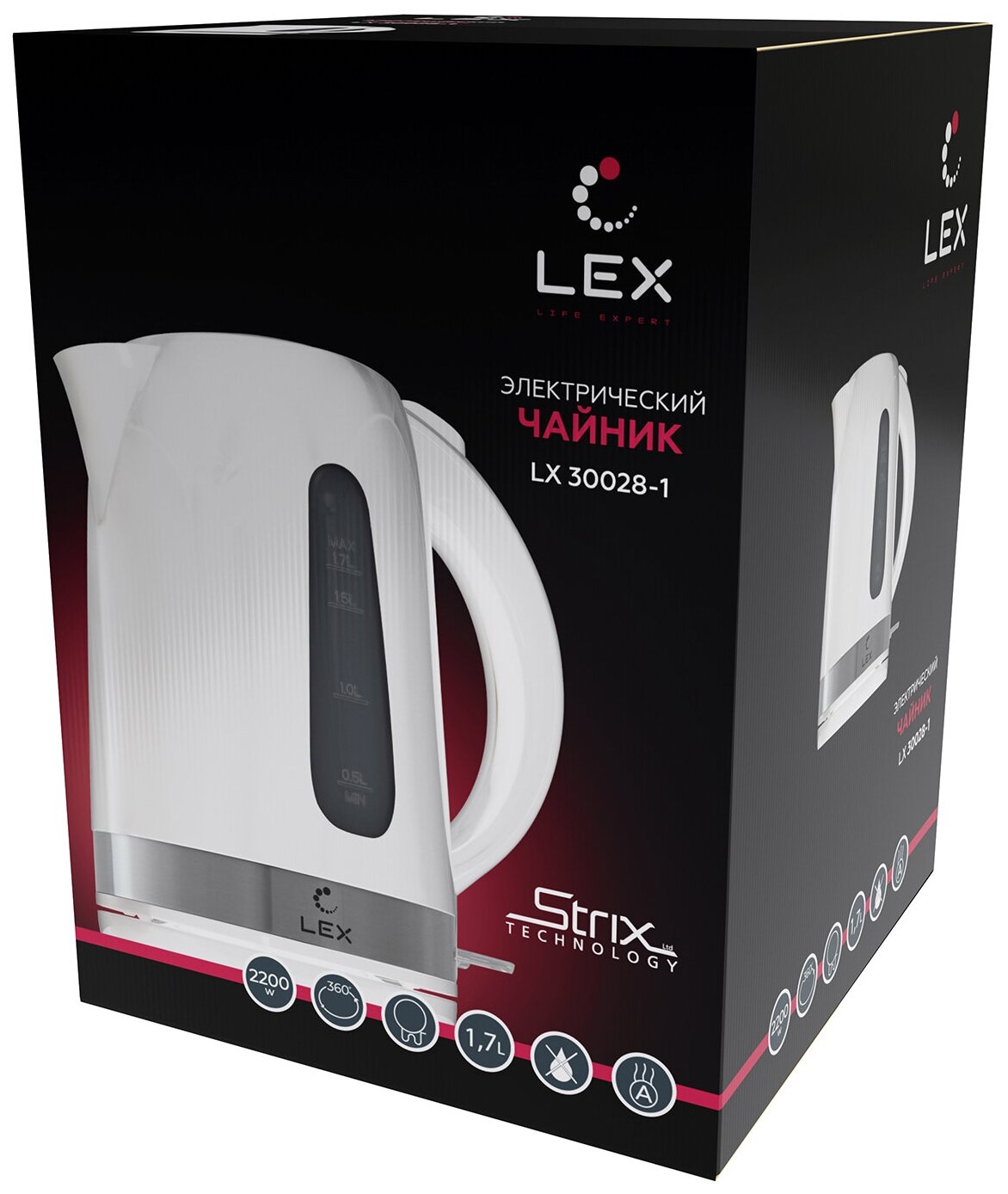 Чайник электрический Lex LX 30028-1, пластик, 1.7 л, белый информация: