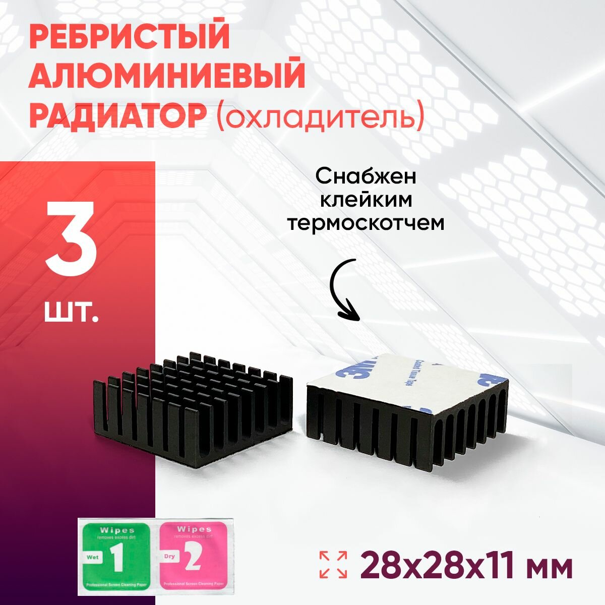 Алюминиевый радиатор 28х28х11 с термоскотчем 3шт. информация: