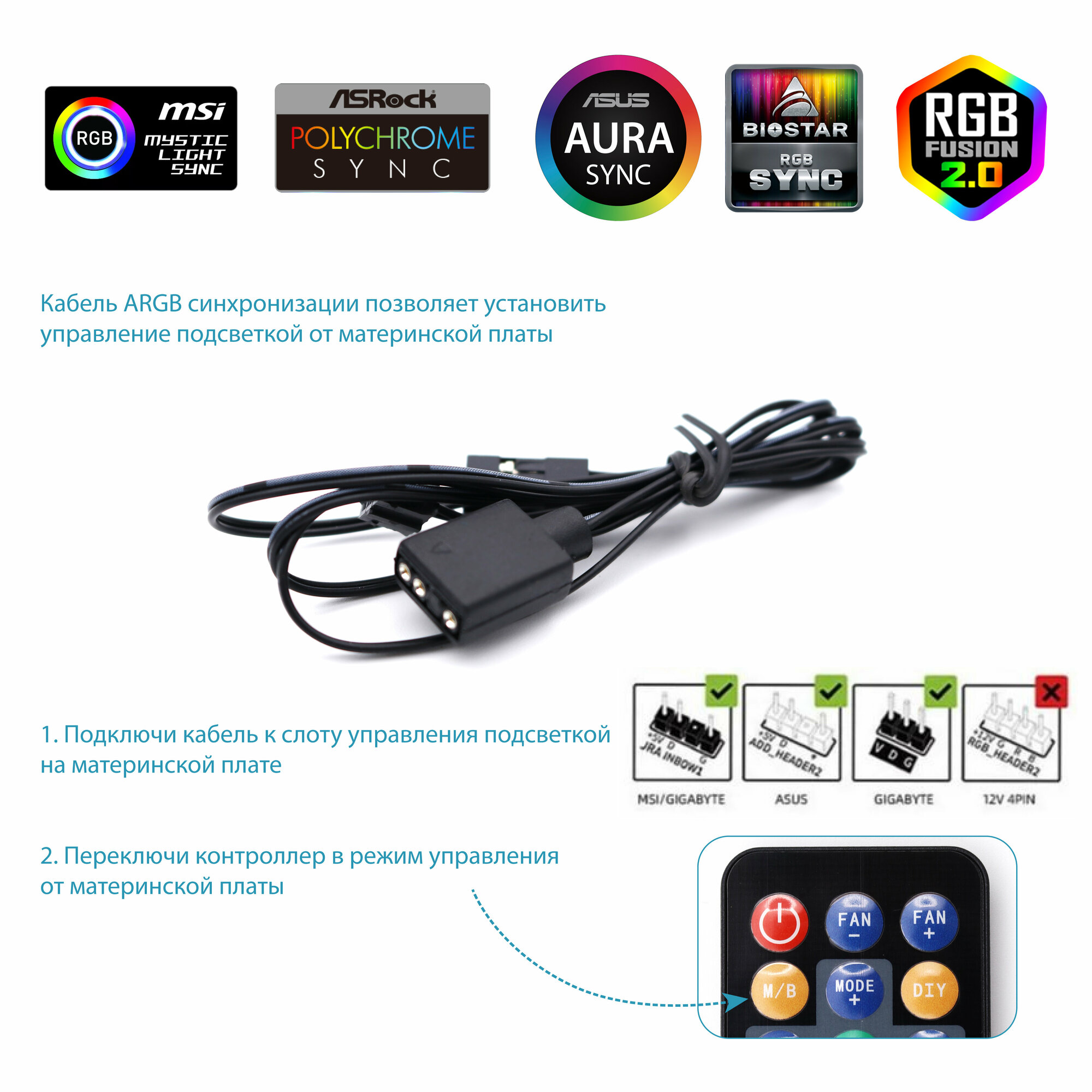 Вентилятор (кулер) CoolMoon с ARGB подсветкой для корпуса ПК, комплект 5 кулеров + контроллер + пульт информация: