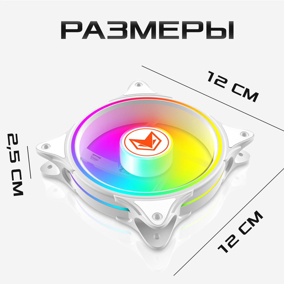 Вентилятор для ПК с ARGB подсветкой, система охлаждения корпуса (кулер) 120х120х25мм, для охлаждения процессора, белый информация: