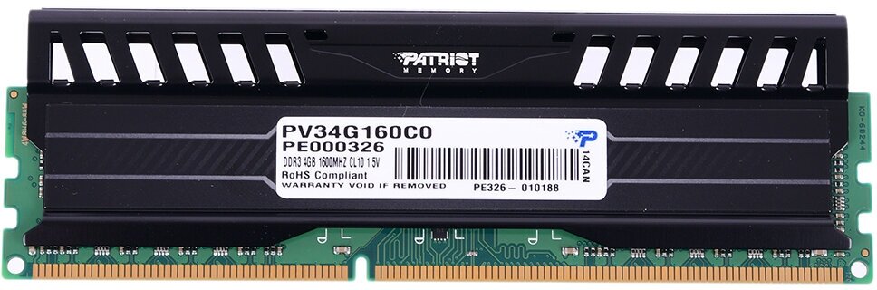 10 цен на DDR 3 DIMM 4Gb PC12800, 1600Mhz, PATRIOT Viper 3 (PV34G160C0) (retail)