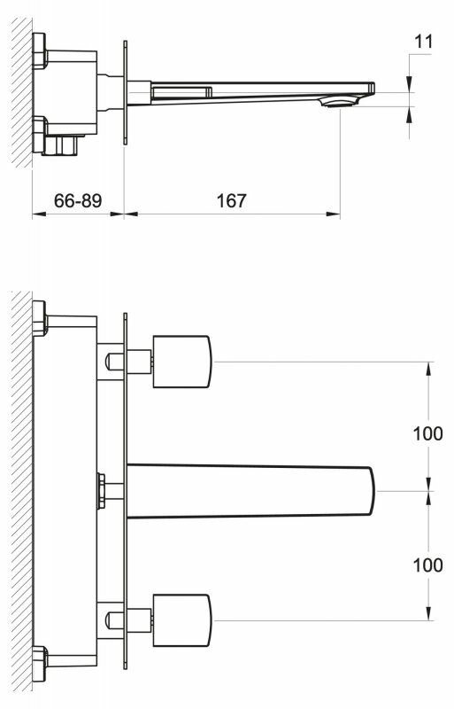Смеситель на раковину настенный Эверест B46-350 с круглым поворотным изливом, кран-буксы 1/2", хром