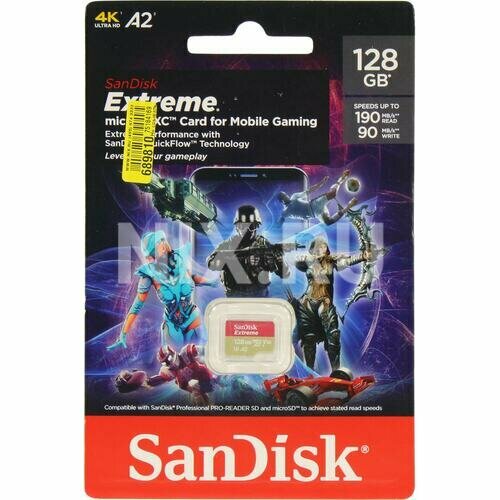 Флеш-карта microSDHC 128Гб Sandisk Extreme Gaming, Class 10 UHS-1 U3 V30 A2 ( SDSQXAA- 128G-GN6GN ) Gaming