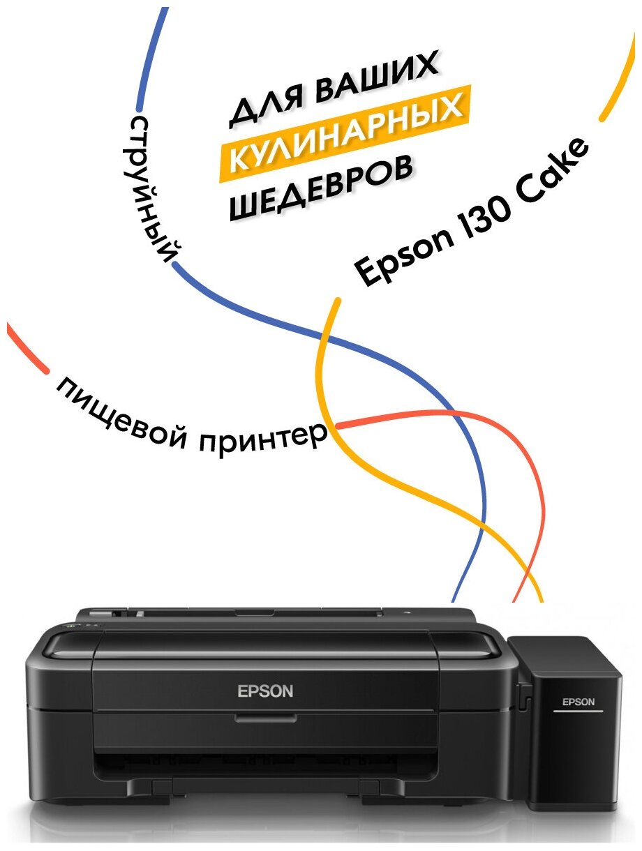 Пищевой принтер Epson START Cake, стартовый набор №6 (принтер, пищевые чернила 4х100 мл, промывочная жидкость 100 мл) информация: