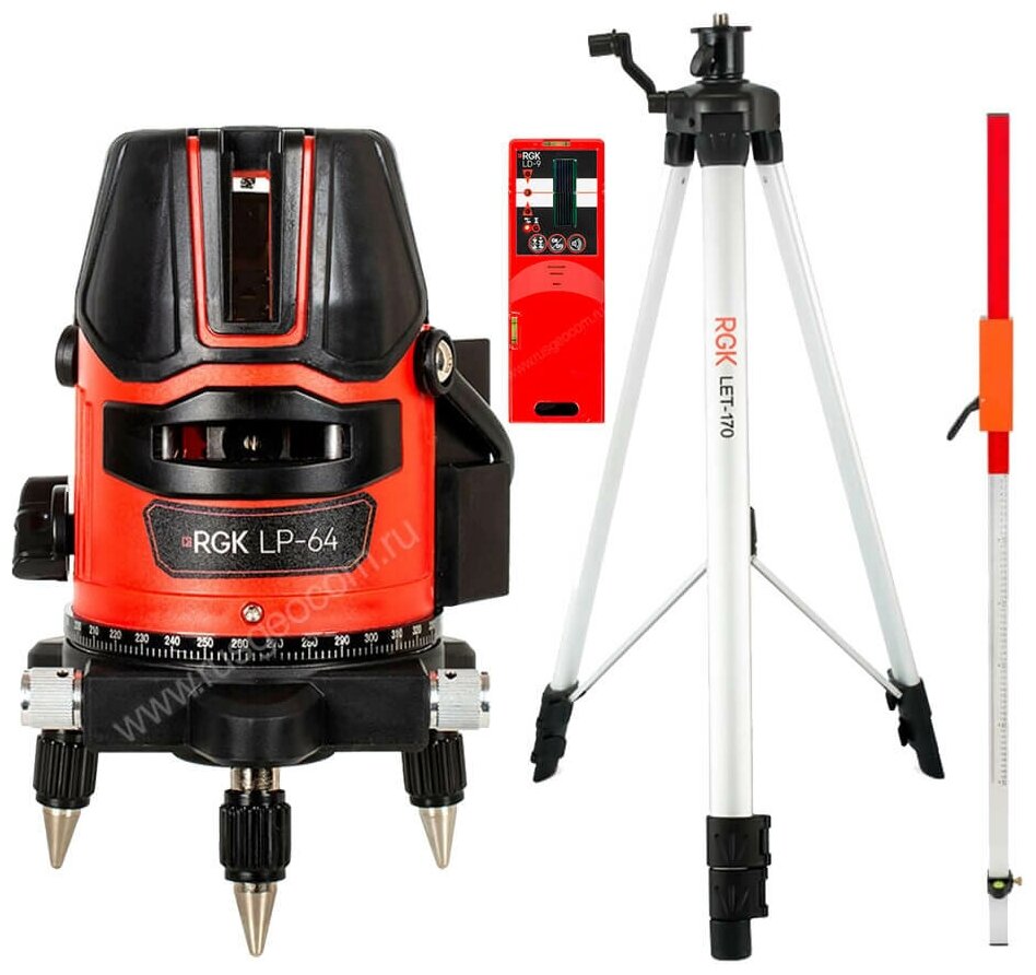 10 цен на Лазерный уровень RGK LP-64 + штатив RGK LET-170, приемник RGK LD-9, рейка RGK LR-2