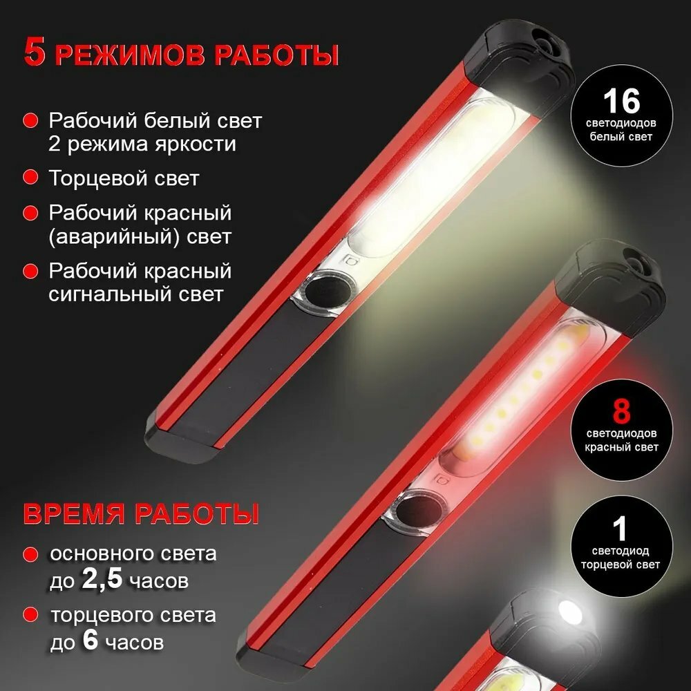 Фонарик ручной аккумуляторный светодиодный/фонарь переносной для ремонта автомобиля/ручной прожектор с магнитом