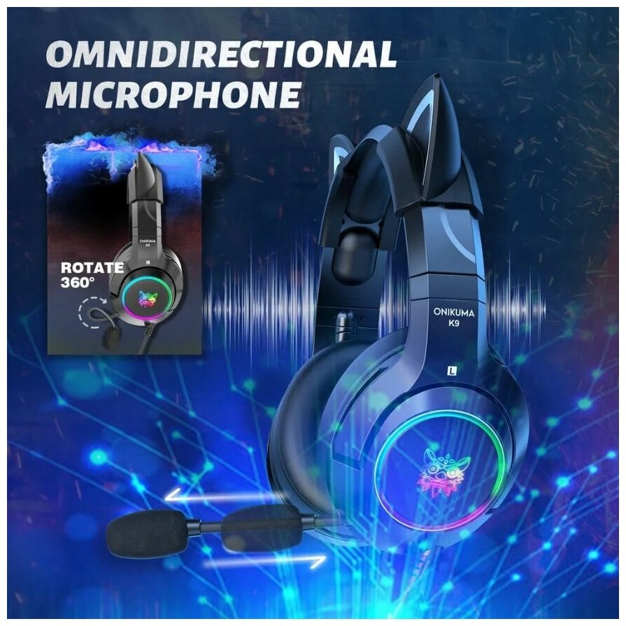 Игровые наушники с подсветкой ONIKUMA K9, игровая гарнитура со съемными ушками, голубые
