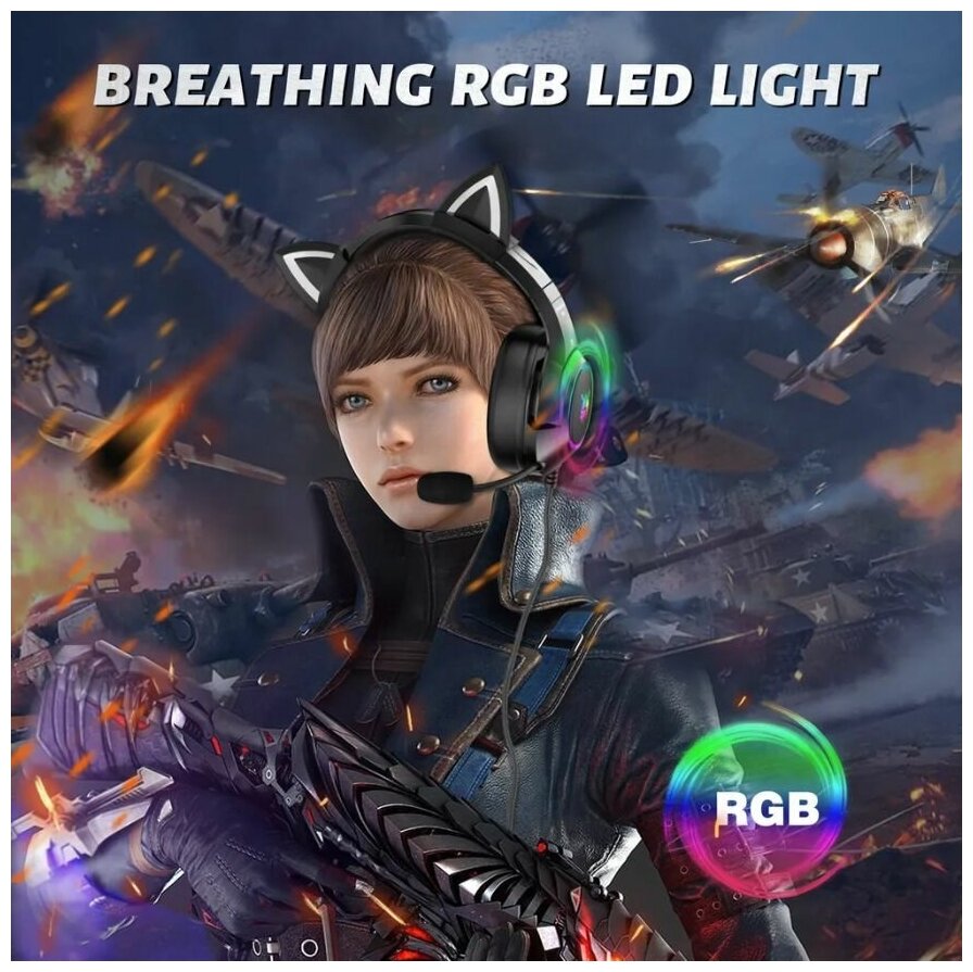 Игровые наушники ONIKUMA K9 Black Cat черные с кошачьими ушками и подсветкой