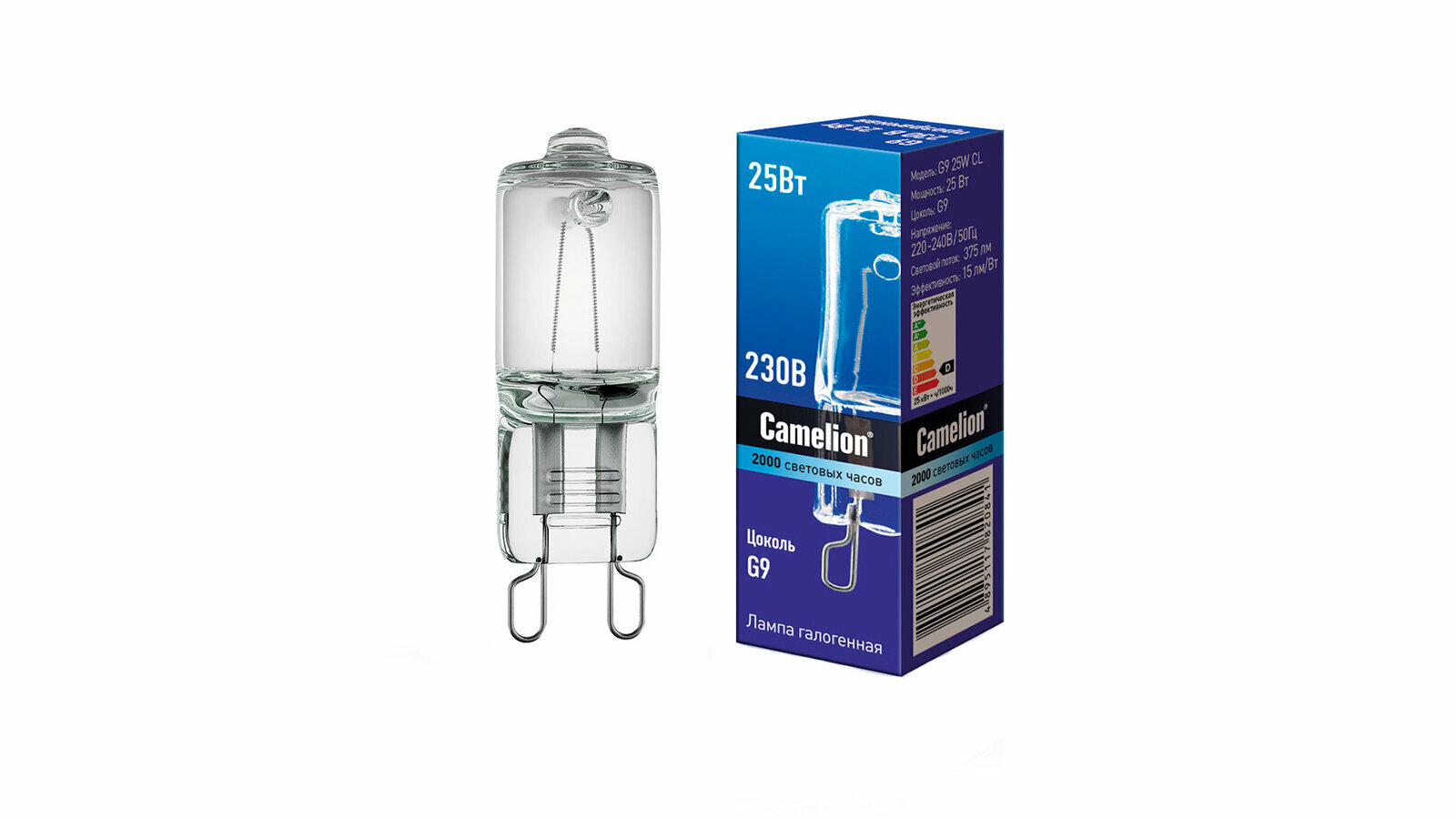 10 цен на Прозрачная галогенная лампа без рефлектора G9 25W 220V 2000 часов Camelion 5845
