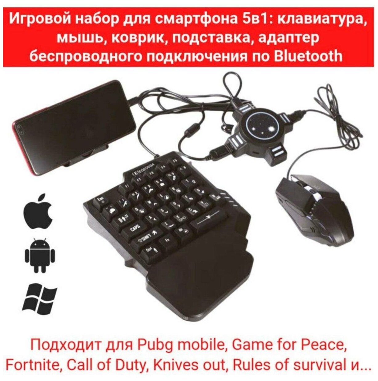 Отзывы на Набор геймера к телефону. iOS/Android Игровой набор для телефона 5 в 1 combo pack RGB, подарок геймпад для телефона / Pubg, CoD, borderlands и другие