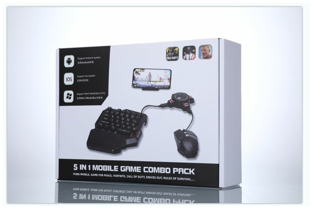 10 цен на Набор геймера к телефону. iOS/Android Игровой набор для телефона 5 в 1 combo pack RGB, подарок геймпад для телефона / Pubg, CoD, borderlands и другие