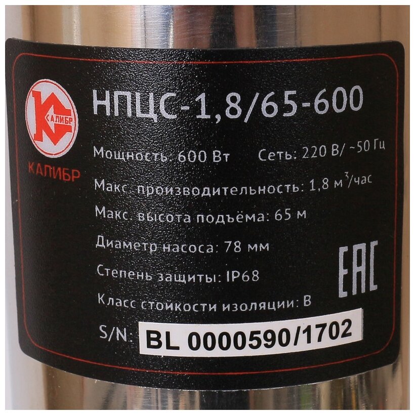 Калибр Эл. насос центроб. скважинный нпцс- 1,8/65-600 NEW 00000078709