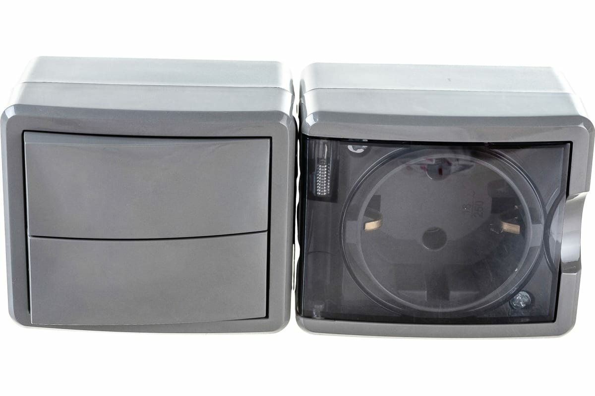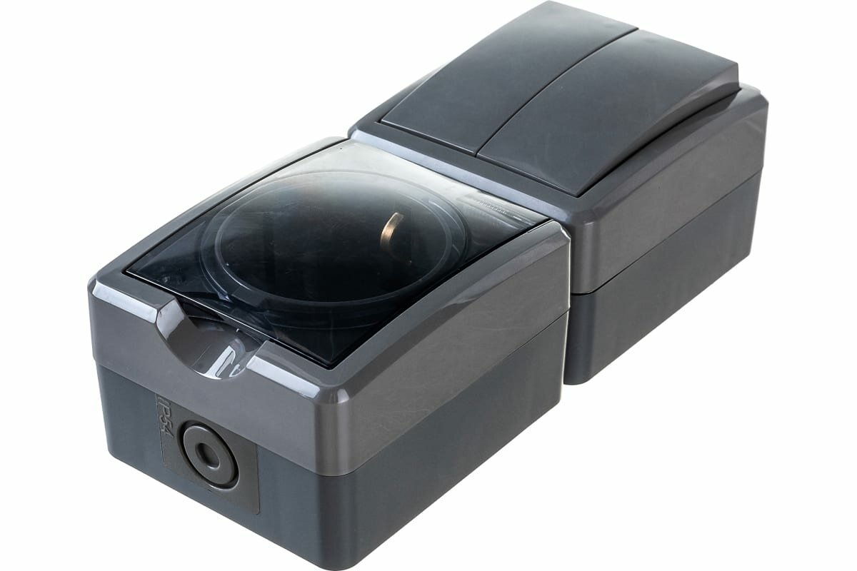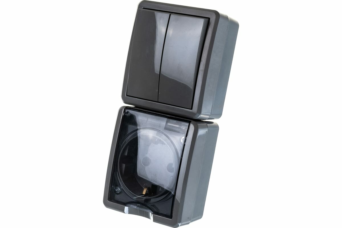 Блок: розетка+вертикальный двойной выключатель ЭРА Эксперт 11740803 IP54, 16A, 250В, ОУ Б0036007 информация: