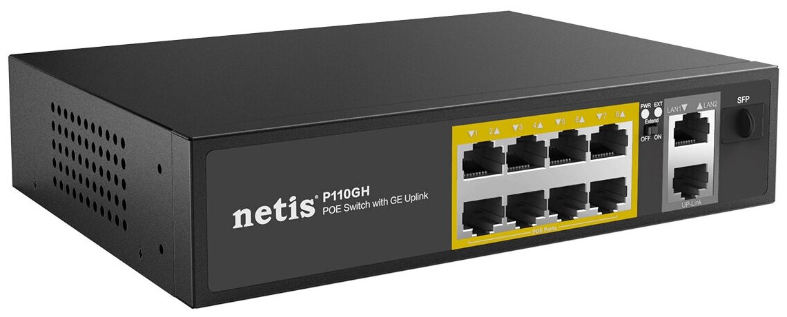 10 цен на Коммутатор NETIS 10PORT 10/100M 8POE+2XGE+SFP P110GH, черный