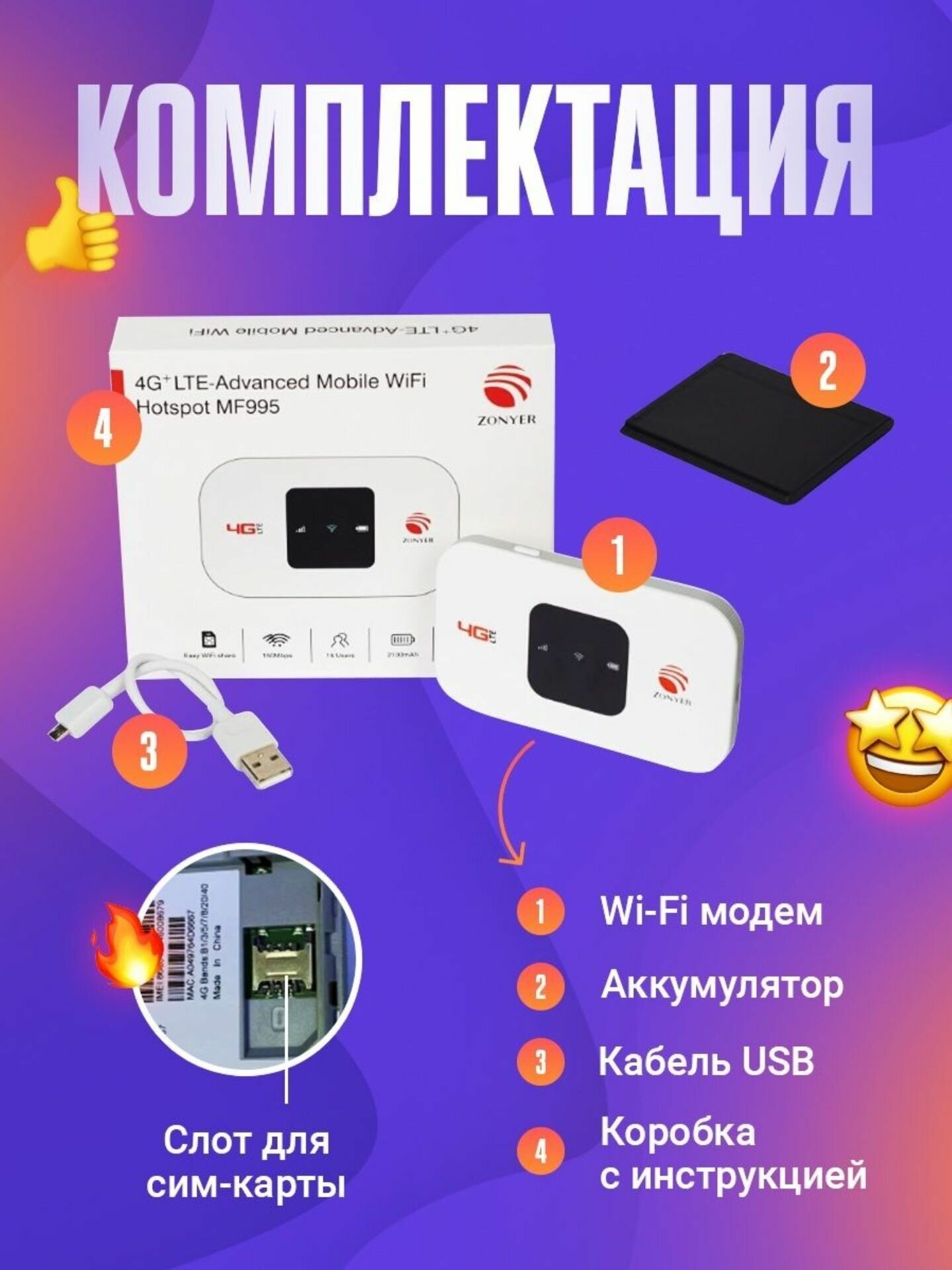 Модем портативный KUPLACE / 4G LTE 150 Мбит/с / До 15 пользователей, белый информация: