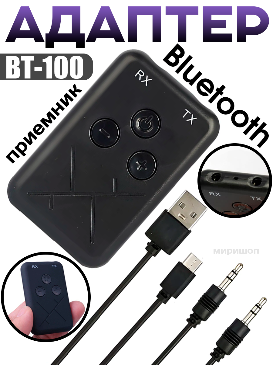 10 цен на Адаптер приемник/передатчик Bluetooth BT-100, черный