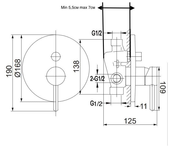 | Особенности | S-образные эксцентрики / держатель душевой лейки |