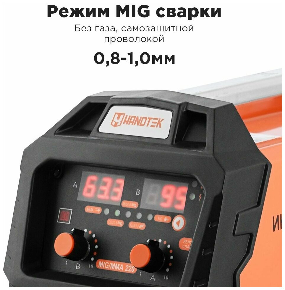 10 цен на Инверторный сварочный аппарат полуавтомат синергетический Handtek MIG/MMA-220, 220А, MIG MAG MMA FCAW LIFTTIG, 60% ПД, 85% КПД IGBT транзисторы