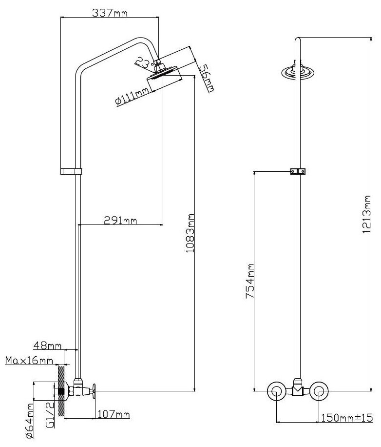 Душевая стойка Эверест B35-350 с верхним душем, кран-буксы 1/2", хром
